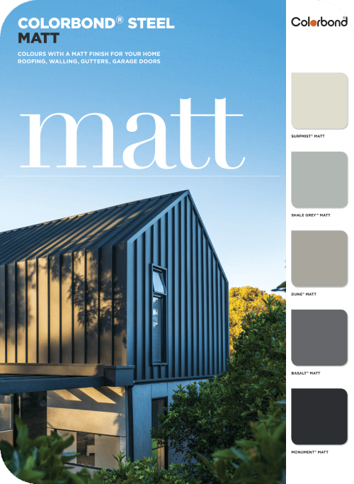 MAKE A LASTING IMPRESSION. COLORBOND® steel’s new Matt finish offers a softer look in neutral tones, allowing you to make a sophisticated and personal design statement.